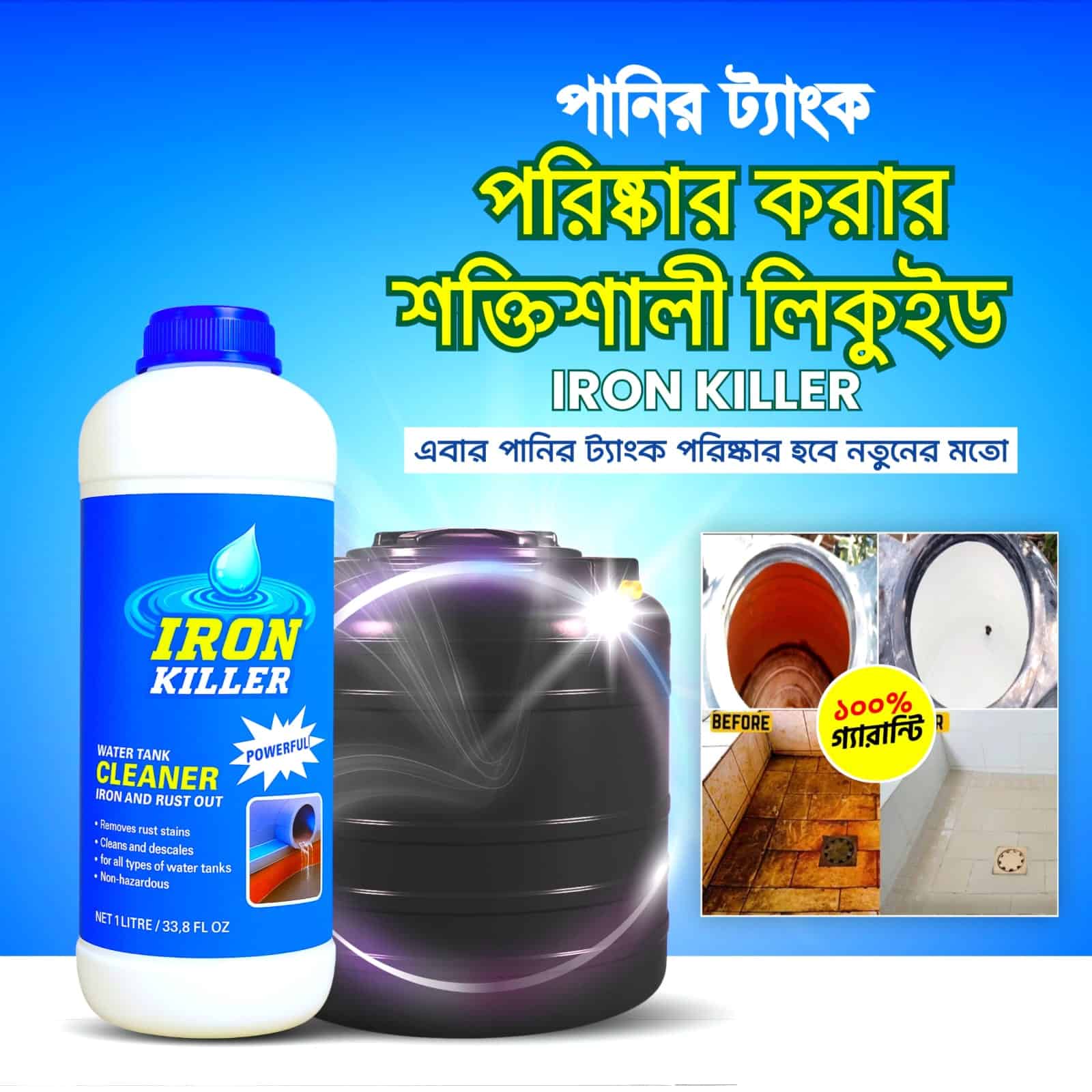 ✅ ট্যাংকে ভালো করে Iron Killer টা মিশিয়ে ৫ মিনিট ঢাকনা বন্ধ করে রেখে দিন